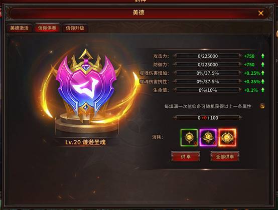 (3) 对美德进行信仰供奉、信仰升级,可获得超高额属性加成!