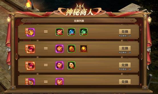 (2)可以使用部分道具与神秘商人进行交换,换取其他道具