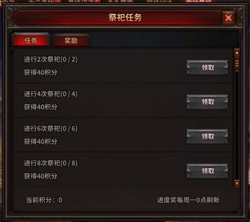 (1) 魔神祭祀新增每周任务及每周奖励,每周一0点刷新。完成任务可获得大量奖励