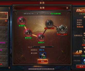 1) 当坐骑达到指定的等级条件时,将会在对应的坐骑界面开启血脉功能;
