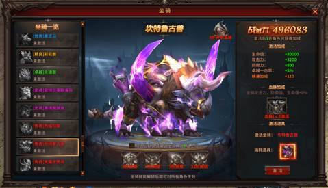 2) 消耗对应的坐骑召唤石,可以灌注血脉,提升血脉等级,获得强力血脉效果,血脉超高加成,助你一路登顶!