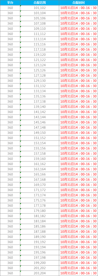 非常感谢勇士们对《暗黑大天使》的支持!为了给大家提供更加优质的游戏环境,感受更多的游戏乐趣,提高游戏的可玩性和互动性,我们将对以下区服进行合服操作,合服服务器开启时间将根据合服进度提前或延迟。合服完毕后玩家可以通过原有账号登陆数据互通后的服务器,对此给您带来不便,敬请见谅。