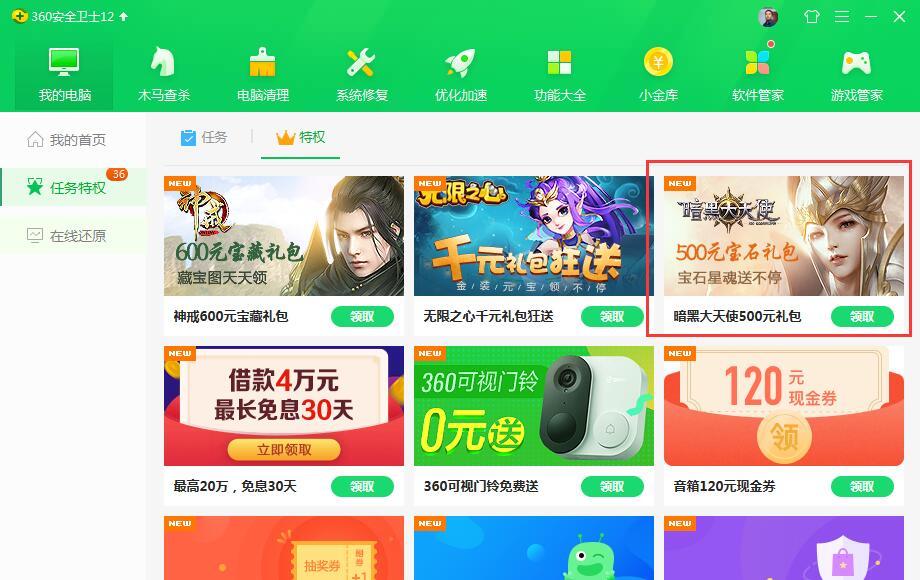 1、领取特权礼包需要360安全卫士等级达到指定等级!如未达到指定等级,可通过完成下方任务提升等级。