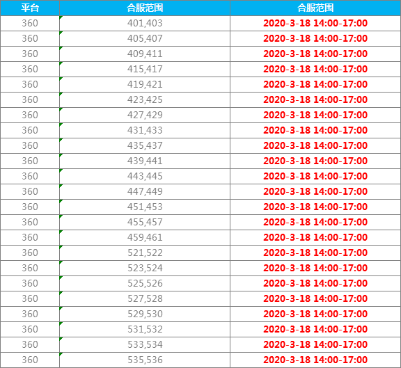 非常感谢勇士们对《暗黑大天使》的支持!为了给大家提供更加优质的游戏环境,感受更多的游戏乐趣,提高游戏的可玩性和互动性,我们将对以下区服进行合服操作,合服服务器开启时间将根据合服进度提前或延迟。合服完毕后玩家可以通过原有账号登陆数据互通后的服务器,对此给您带来不便,敬请见谅。